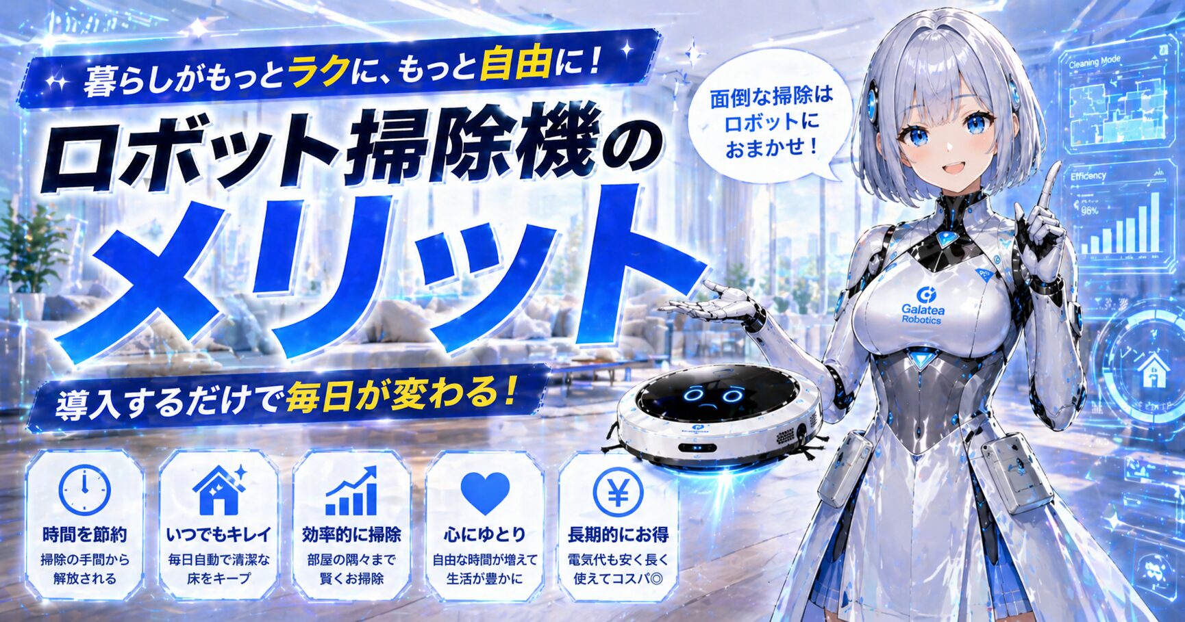 お掃除をボクたちに任せたら、浮いた時間でもっと他の事ができるよ!